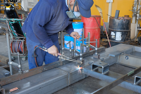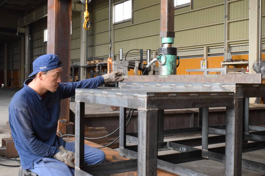 大型フレーム製造で欠かせないのが「歪み取り」。