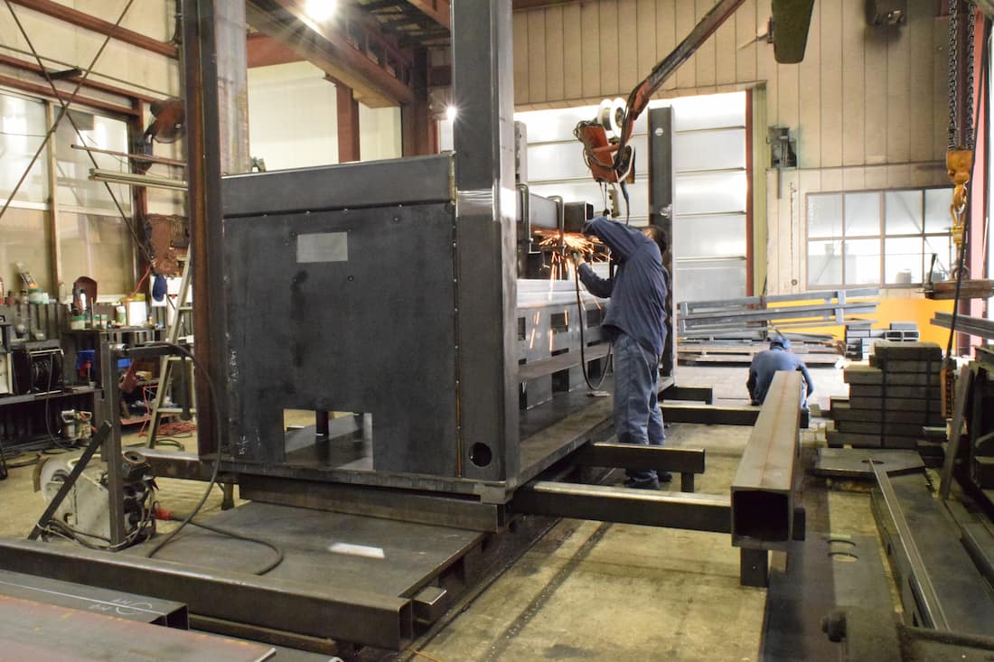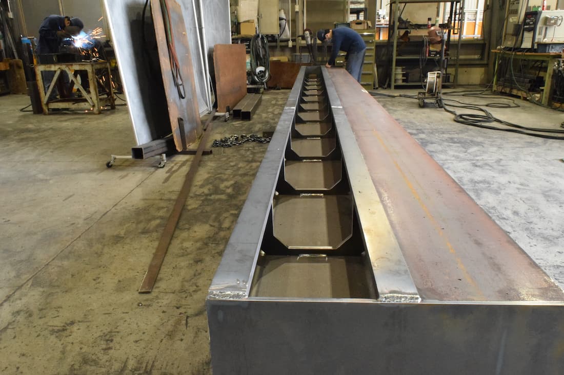 私たち栄工作所では、幅3,000mm×長さ8,000mmまでの大型フレームに対応し、製作から納品までを自社一貫体制で手がけています。