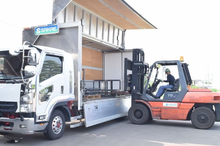 製品は自社保有のトラックで丁寧に輸送。納入先の工場や時間に合わせ、柔軟に配送いたします。